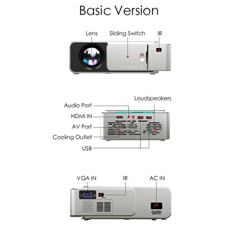 Мини проектор Мультимедийный проектор, Портативный LED проектор UC46 UC68 с Wi-Fi (Черный), черный