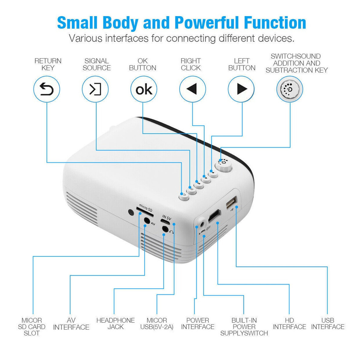 Мультимедийный проектор, Мини проектор Мультимедийный мини проектор портативный с динамиком Led Projector YG300 M1, желтый, белый