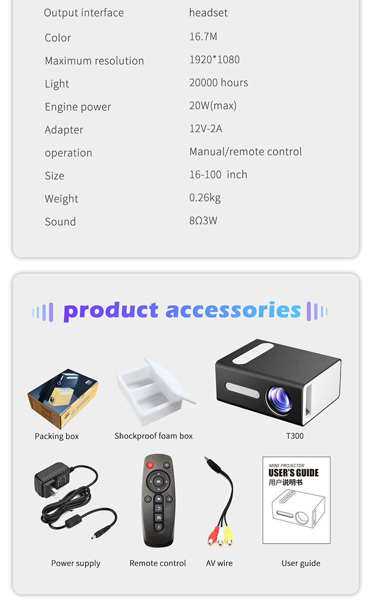 Мини проектор, Мультимедийный проектор AS2080S, желтый