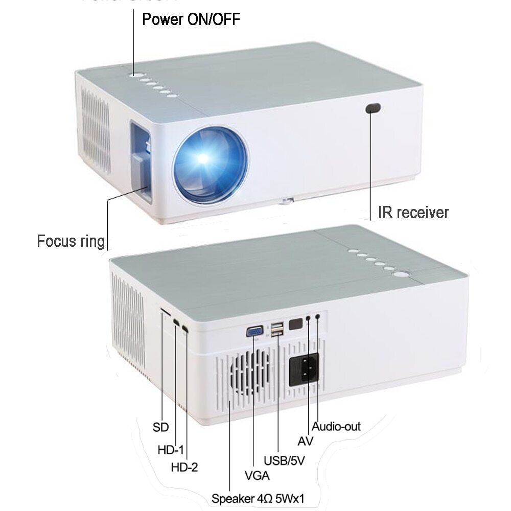 Портативный проектор Проектор Everycom T5, 2600 люмен (USB / HDMI / VGA / AV), белый