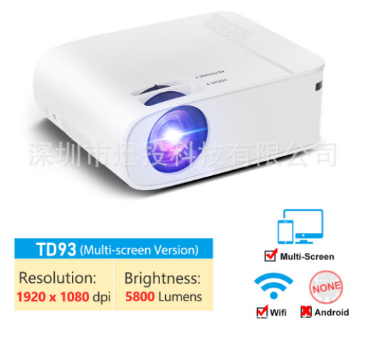 Портативный проектор Мини-проектор ThundaeL Full HD 1080P TD93 Multi-Screen Version, белый