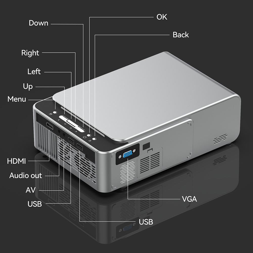 Проектор Портативный мини-проектор FHD 1080P Smart Correction, желто-британский штекер, разноцветный