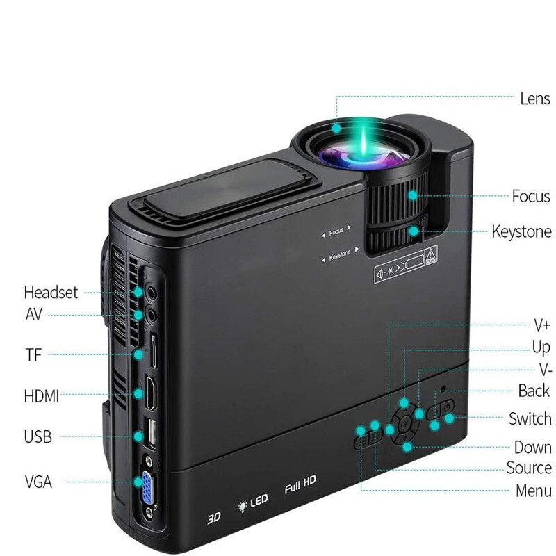 Гобо проектор Беспроводной мини-проектор Wifi LED 1080P Домашний кинотеатр USB HDMI UK Plug, черный