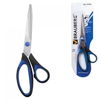 Ножницы BRAUBERG "Respect", 216 мм, резиновые вставки, сине-черные, 3-х сторонняя заточка, блистер, 231563