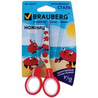Ножницы BRAUBERG "Краб", 130 мм, с цветной печатью крабов, красные