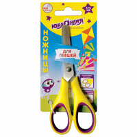 Ножницы Юнландия, 125 мм, для левши, резиновые вставки, желто-фиолетовые
