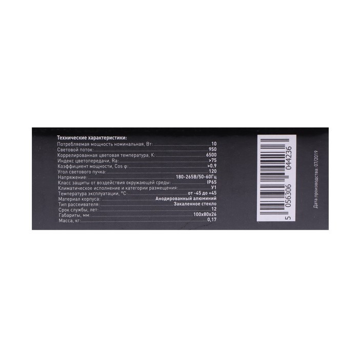 Прожектор, 950 Лм, IP65, 100x80x26 мм 6500 К, 10 Вт