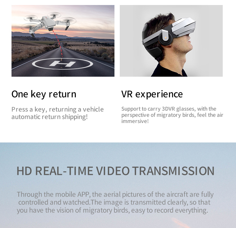 Квадрокоптер с камерой E88 Pro, бело-серый, 2 камеры (4K, HD)