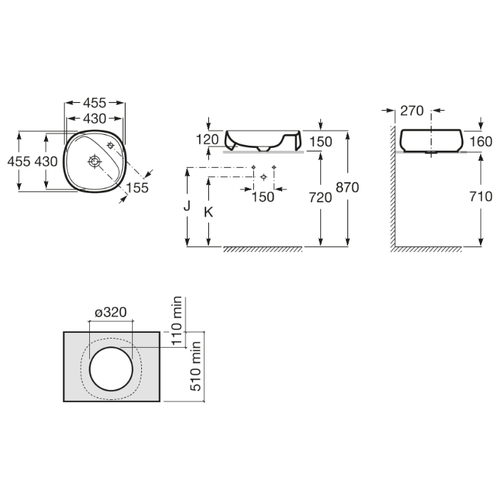 Раковина 65 см Jacob Delafon Struktura EGC112
