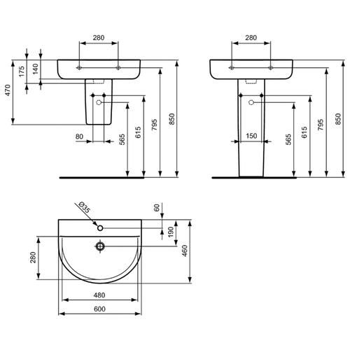 Раковина 60 см Ideal STANDARD Connect E 8116
