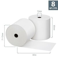 Чековая лента из термобумаги 80 мм (диаметр 71-72 мм, намотка 80 м, втулка 12 мм, 8 штук в упаковке)