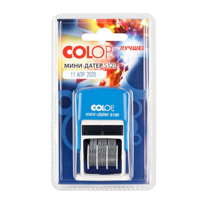 Датер-мини автомат пластик, высота шрифта 3,8 мм, месяц буквами, русский, блистер S 120