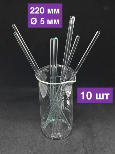 Палочка стеклянная для декора, перемешивания, 220 мм х 5 мм, 10 шт