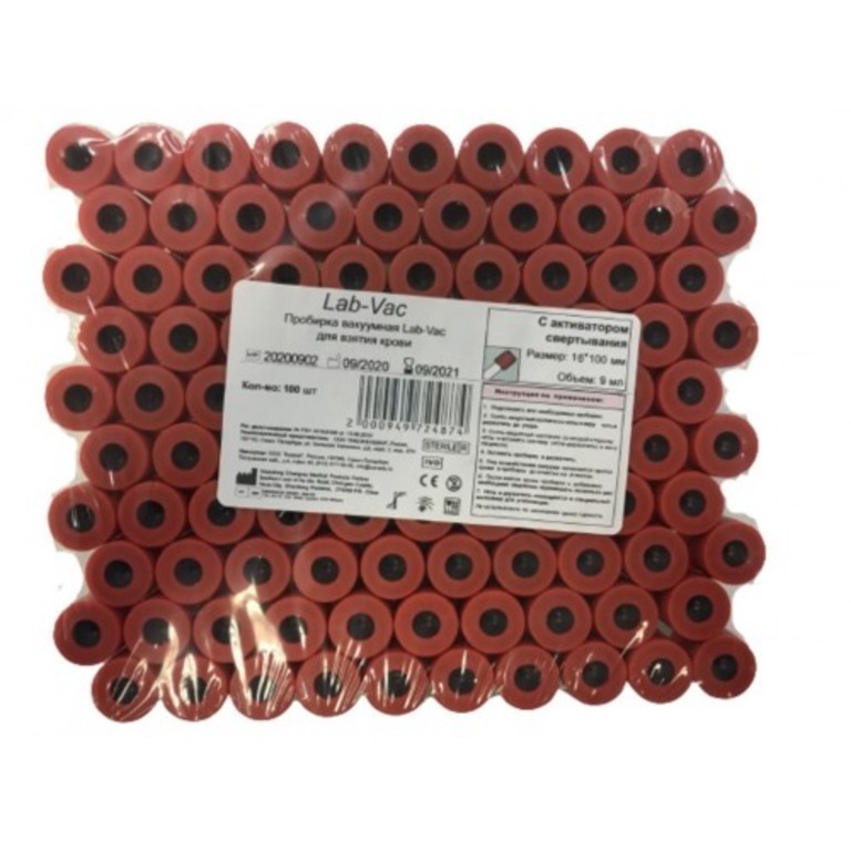 Пробирки Lab-Vac для взятия крови с активатором свертывания 16х100мм 9 мл, комплект - 100 штук