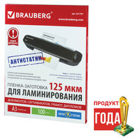 Пленки-заготовки для ламинирования BRAUBERG, комплект 100 шт., для формата А3, 175 мкм, 531778