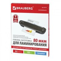 Пленка для ламинирования BRAUBERG, А4, 80 мкм, 100 шт 531775
