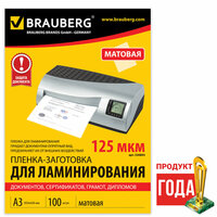 Пленки-заготовки для ламинирования BRAUBERG, комплект 100 шт., для формата А3, 125 мкм, матовые