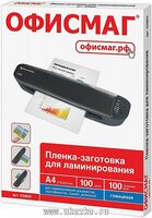 Пленки-заготовки для ламинирования, комплект 100 штук, для формата A4, 100 мкм, (530802)