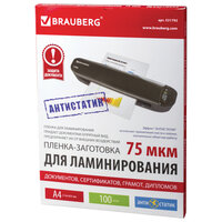 Пленка A4 75 мкм для ламинирования антистатик BRAUBERG