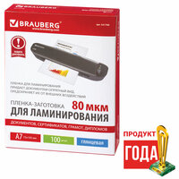 Пленки-заготовки для ламинирования BRAUBERG, комплект 100 шт для формата А7, 80 мкм 531786