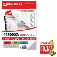 BRAUBERG Обложки для переплета BRAUBERG, комплект 100 шт., А4, пластик 200 мкм, прозрачные, 530829
