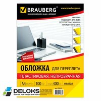 Обложки для переплета BRAUBERG, комплект 100 шт., А4, пластик 300 мкм, желтые