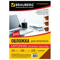 Обложки для переплета BRAUBERG, комплект 100 шт., тиснение под кожу, А4, картон 230 г/м2, коричневые