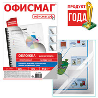 Обложки для переплета офисмаг, комплект 100 шт., А4, пластик 150 мкм, прозрачные