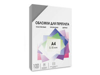 Обложки для переплета прозрачные пластиковые гелеос А4, 0.18 мм, дымчатые, 100 шт.