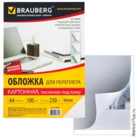 Обложки для переплета BRAUBERG (брауберг), комплект 100 шт., тиснение под кожу, А4, картон 230 г/м2,