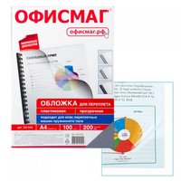 Обложки для переплета офисмаг, комплект 100 шт., А4, пластик 200 мкм, прозрачные, 531448