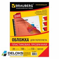Обложки для переплета BRAUBERG, комплект 100 шт., А4, пластик 150 мкм, прозрачно-красные