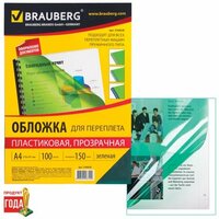 Обложки для переплета BRAUBERG, комплект 100 шт., А4, пластик 150 мкм, прозрачно-зеленые, 530828