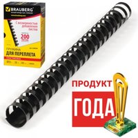 Пружины пластиковые для переплета BRAUBERG, комплект 50 шт., 25 мм, для сшивания 181-200 листов, черные, 530928