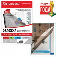 Обложки для переплета BRAUBERG, комплект 100 шт., А4, пластик 300 мкм, черные, 530940