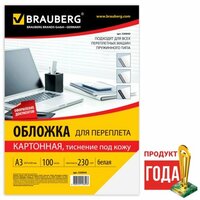 Обложки для переплета BRAUBERG, комплект 100 шт., А4, пластик 300 мкм, белые, 530939