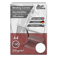 Обложки для переплета картонные ProfiOffice A4 270 г/кв.м белые текстура кожа (100 штук в упаковке)