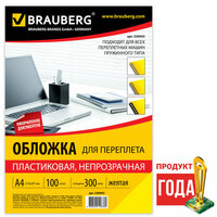 Обложки для переплета BRAUBERG, комплект 100 шт., А4, пластик 300 мкм, желтые, 530943