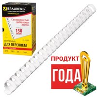 Пружины пластиковые для переплета BRAUBERG, комплект 100 шт., 6 мм, для сшивания 10-20 листов, белые