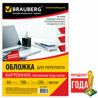 Обложки для переплета BRAUBERG комплект 100 шт. тиснение под кожу А4 картон 230 г/м2 красные