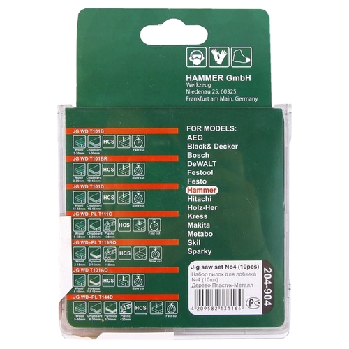 Набор пилок для лобзика Hammer JG WD-PL 204-904 10 шт.