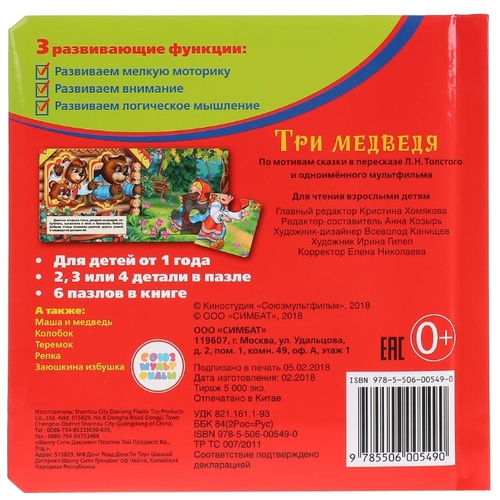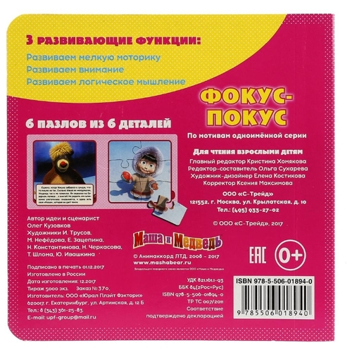 Умка Книга-пазл. Маша и Медведь. Фокус-покус (6 пазлов)