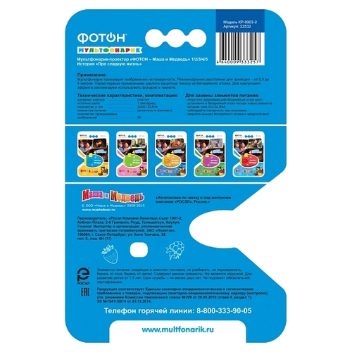 Диапроектор ФОТОН Маша и Медведь. Про сладкую жизнь