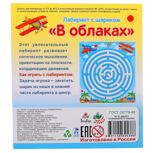 Головоломка Мастер игрушек Лабиринт с шариком В облаках (IG0194)