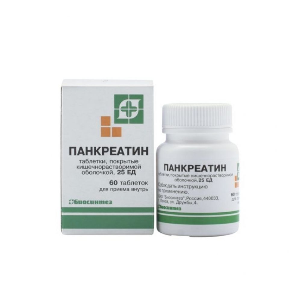 Панкреатин 25 ЕД 60 шт. блистер таблетки кишечнорастворимые , покрытые пленочной оболочкой