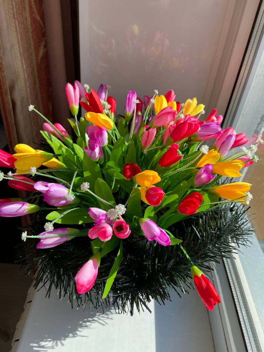 Ритуальная композиция, траурная корзина на пасху, на 9 мая