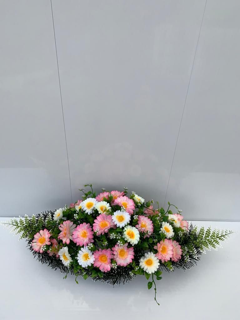 Лодочка ритуальная/Композиция из искусственных цветов / Траурные цветы/ Цветы искусственные на кладбище