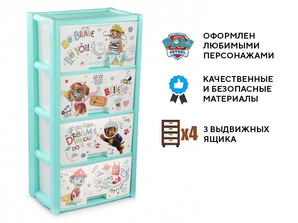 Детский пластиковый четырехсекционный комод с ящиками "Щенячий Патруль"