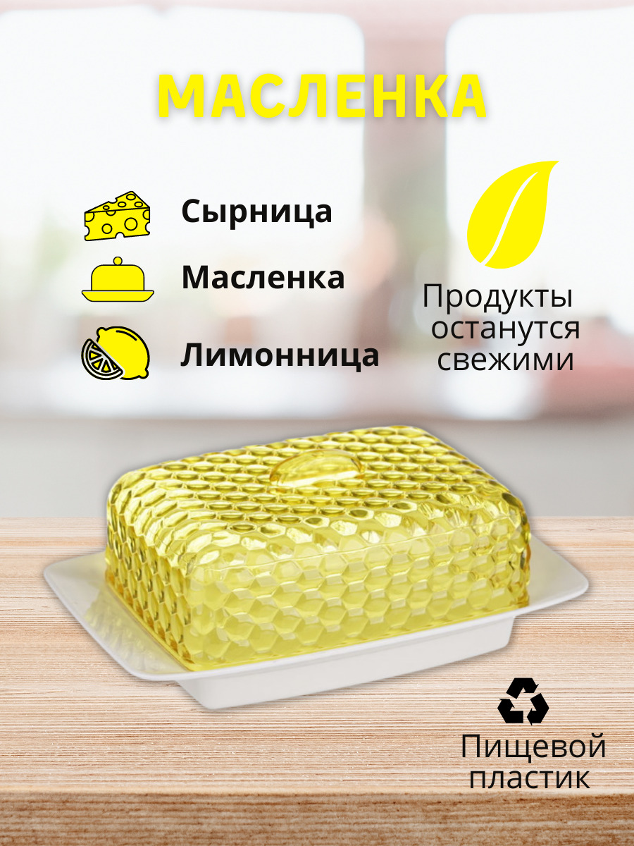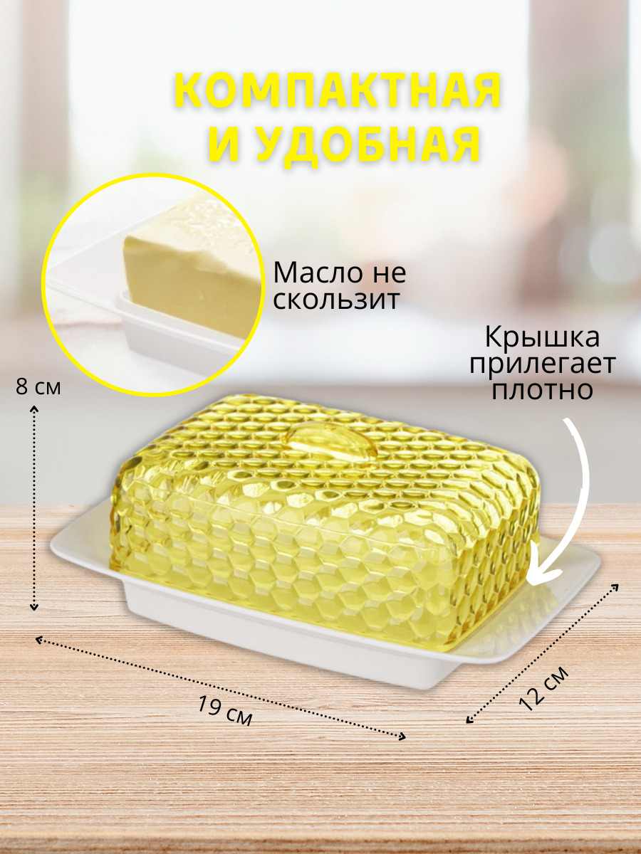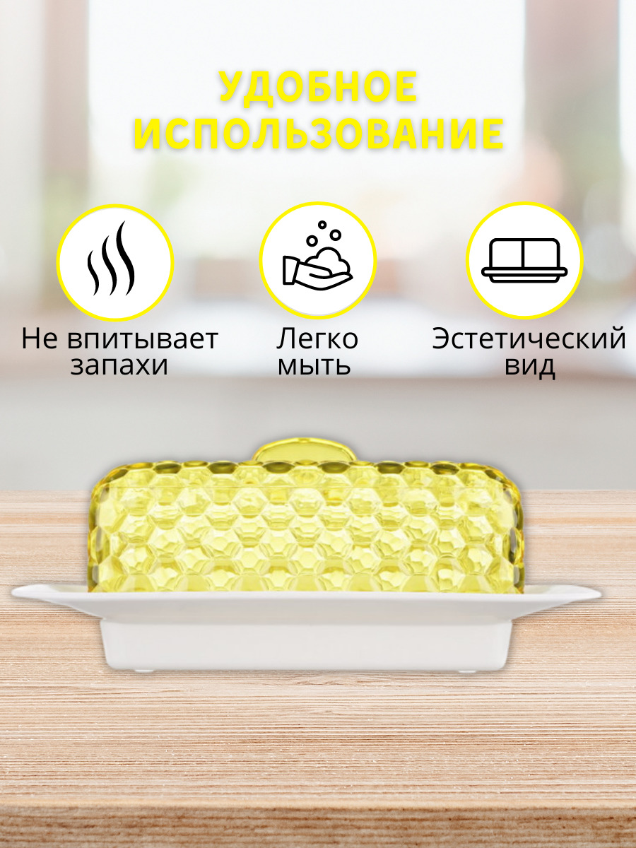 Масленка Альтернатива Мозаика, емкость / контейнер для сливочного масла, бело-желтый
