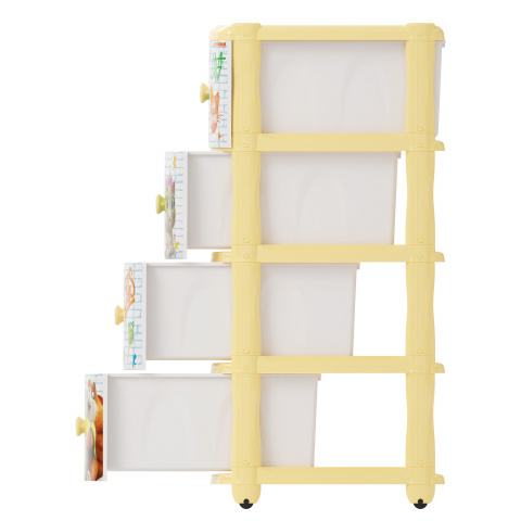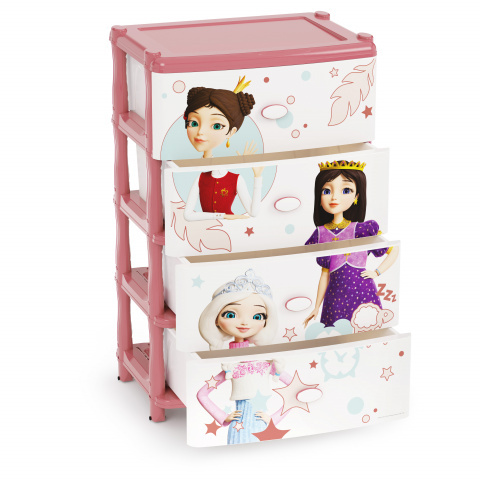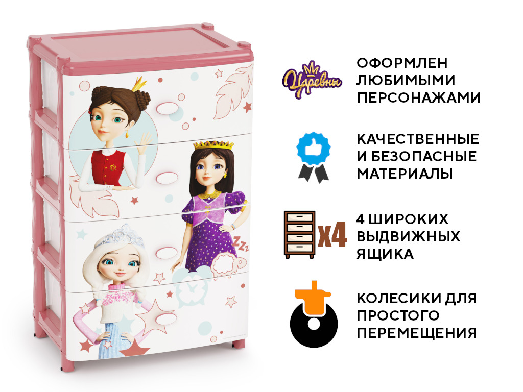 Детский пластиковый широкий четырехсекционный комод с ящиками "Царевны"